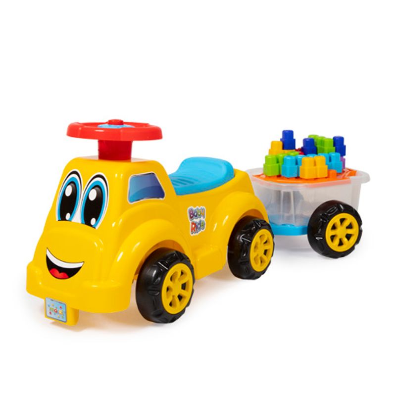 Divertidamente colorido, o Baby Ride Com Trailer é brincadeira pura! Ajuda na coordenação motora fazendo com que a criança projete o corpo para frente e movimente o carrinho com os pés, o trailer carrega pecinhas de encaixar e é conectado ao carrinho e a buzina dá um toque todo especial!