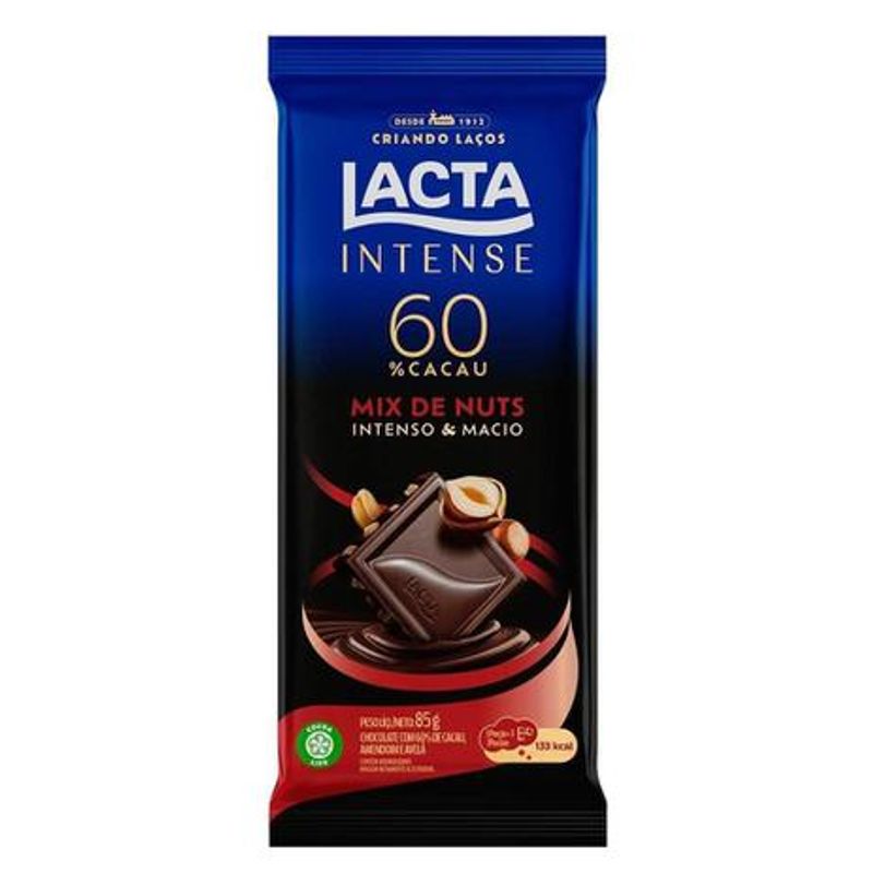 BARRA CHOCOLATE LACTA INTENSE 60% CACAU MIX NUTS 85G