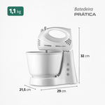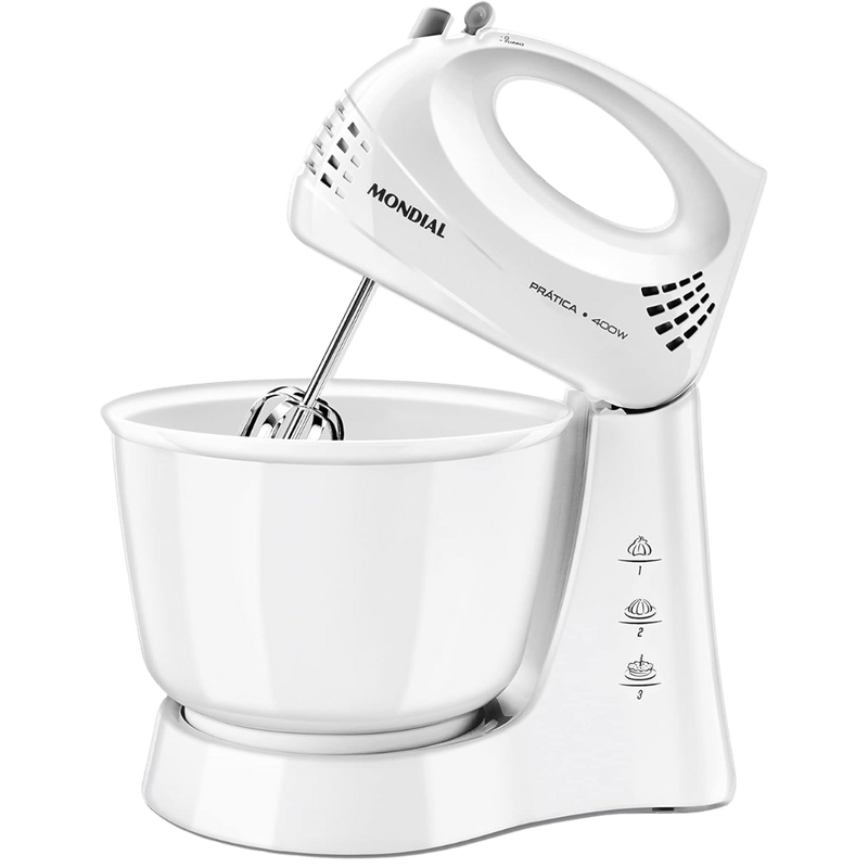 A Batedeira Prática B-44-W é ideal para produzir massas e receitas do dia a dia com um resultado incrível. Possui 400W de potência, 3 velocidades para controlar o ponto das receitas e função turbo para aumentar o desempenho. Vem com tigela de 3,6 litros e batedores em aço cromado, que são mais resistentes e deixam a massa no ponto certo. Por ser leve e compacta, você prepara pratos de forma muito mais prática. Saiba mais sobre a B-44-W da Mondial: