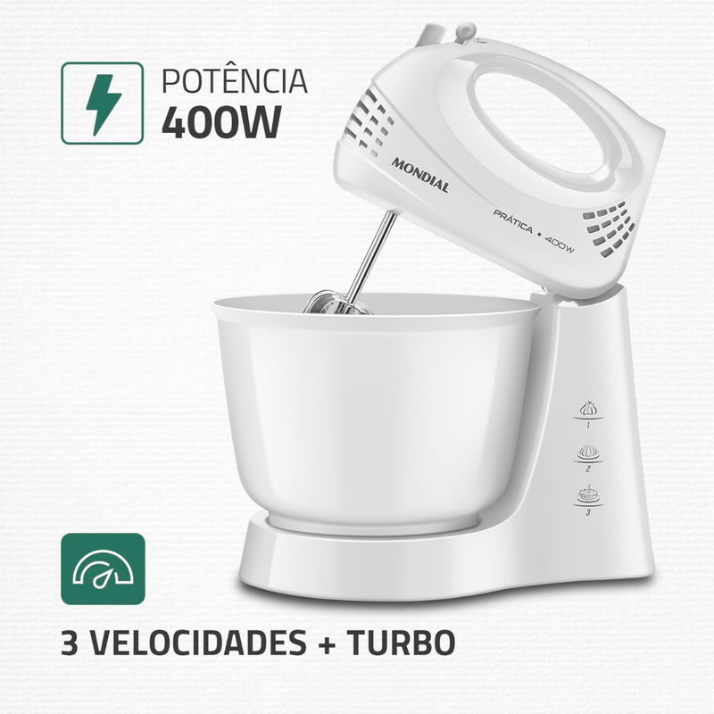 POTÊNCIA DE 400W: Proporciona a força necessária para bater de claras em neve até massas de bolo. Garantia de uma consistência perfeita!