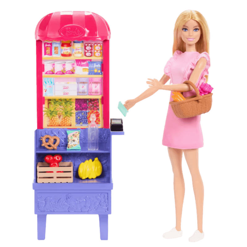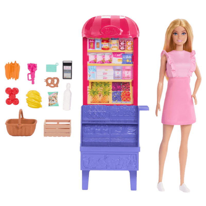 A brincadeira fica ainda mais divertida com o Conjunto Barbie Malibu Supermercado, inspirado no filme Barbie e Teresa: Receita de Amizade! A imaginação ganha vida com este cenário completo, onde as crianças podem decidir o que comprar, montar o cardápio do dia e se divertir com as compras. 🛒 Barraca de mercado vibrante com prateleiras para organizar os produtos 🍎 11 acessórios temáticos: frutas, lanches, flores, cesta de compras, engradado, cartão e scanner 👗 Barbie Malibu fashion com vestido rosa e tênis brancos, pronta para explorar o mercado 🎬 Inspirado no filme “Receita de Amizade”, perfeito para reviver cenas ou criar novas histórias! 📦 Conteúdo da embalagem:
