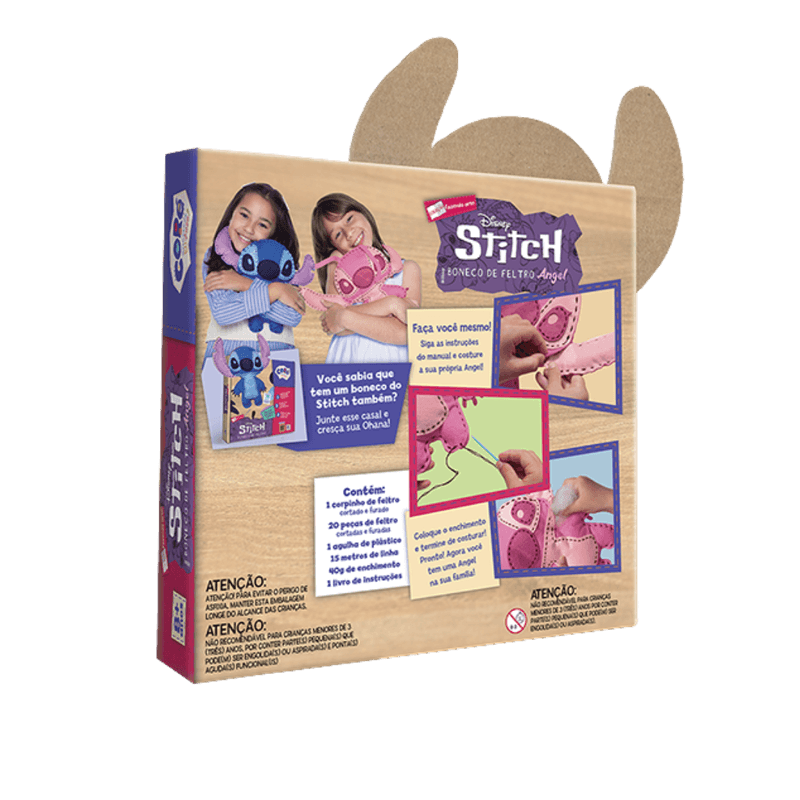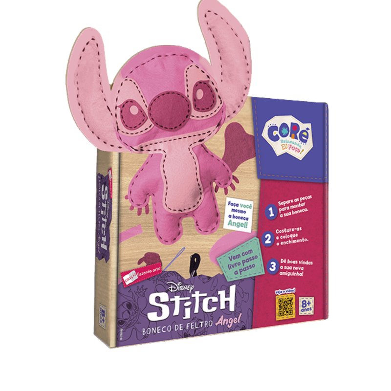 🧵 Costure, crie e se divirta com a personagem mais fofa do universo Stitch! O Boneco de Feltro Angel, da coleção Fazendo Arte, é uma experiência divertida e educativa que estimula a criatividade e habilidades manuais das crianças. Com peças pré-cortadas e um guia passo a passo, os pequenos costuram sua própria pelúcia da Angel – companheira inseparável do Stitch!
