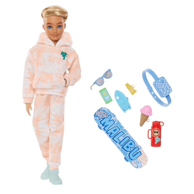 Boneco Ken Barbie Dream Besties com Acessórios – Ambientalista com Skate e Itens de Estilo