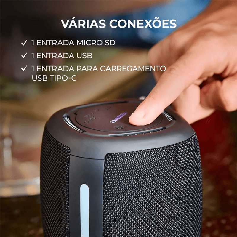 Caixa de Som Bluetooth aws-sp-03-bl 15w rms com tws, LED e IPX4 bivolt