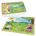 Informações técnicas - impressão direto na madeira - estojo em MDF - produto plastificado - acompanha história ilustrada com os contos clássicos infantis