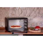 Prepare receitas completas, assados, grelhados e gratinados com muito mais praticidade usando o Forno Elétrico de 46 Litros. Com grande capacidade interna e 1600W de potência, ele é ideal para quem busca desempenho, rapidez e versatilidade na cozinha. Seu design moderno em aço com pintura preta fosca combina com qualquer ambiente, enquanto a porta de vidro com puxador em inox garante elegância, resistência e visualização do preparo sem a necessidade de abrir o forno. O modelo conta com quatro resistências (superior e inferior) que distribuem o calor de forma uniforme, garantindo alimentos bem assados e dourados por igual. O controle de temperatura ajustável até 250°C permite preparar desde receitas delicadas até carnes, massas e gratinados. O timer de 60 minutos oferece mais segurança e praticidade no dia a dia, desligando automaticamente ao final do tempo programado. Acompanha grelha cromada e bandeja de alumínio, facilitando o preparo e a limpeza.