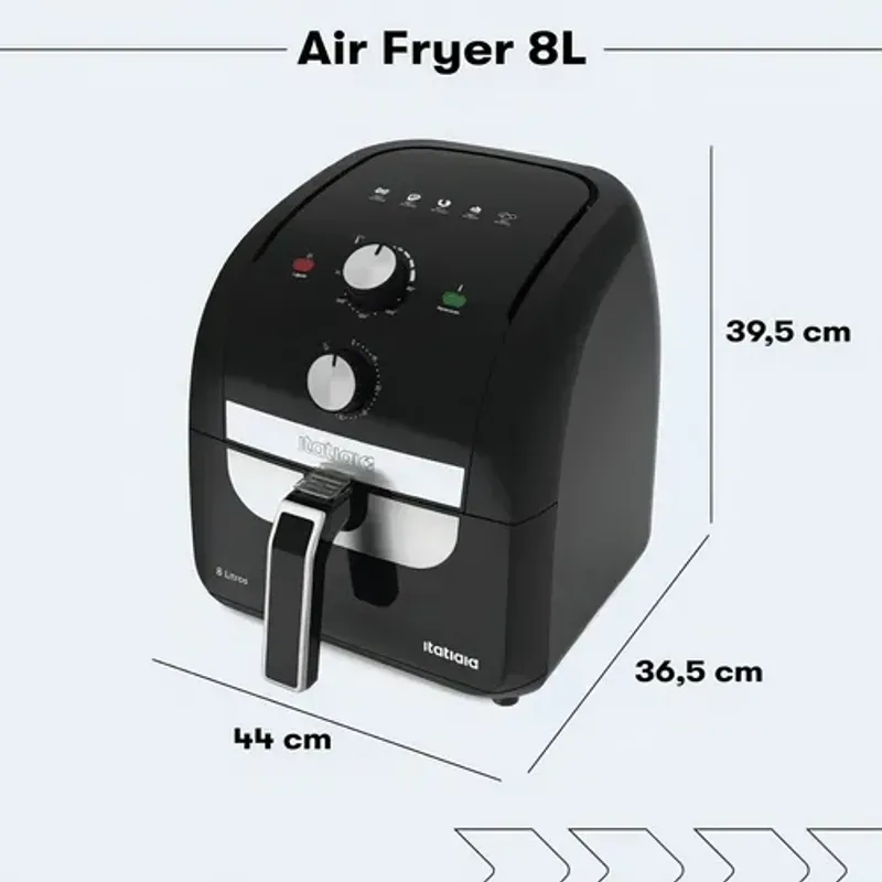 Transforme suas refeições com a Fritadeira Elétrica Air Fryer Itatiaia AFITA1003, que alia saúde e sabor em um único aparelho. Com capacidade de 8 Litros, esta Air Fryer é ideal para preparar porções generosas de alimentos crocantes e saborosos, tudo sem a necessidade de óleo, tornando suas receitas mais saudáveis.