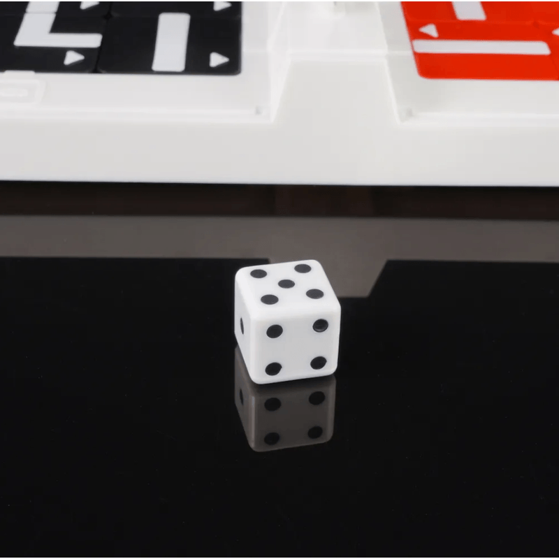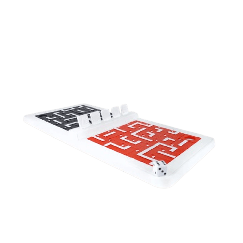 Base do jogo, 5 peças de letras, 50 peças de jogo (25 vermelhas e 25 Pretas), 1 dado e 1 saco zip.