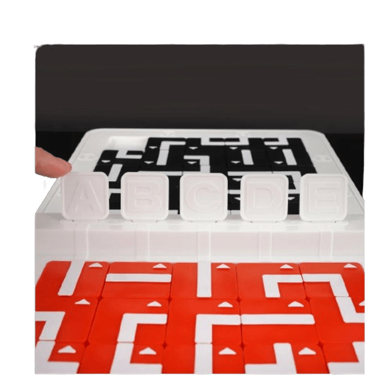 Pense rápido! Du-Elo é um jogo de estratégia em que o objetivo de cada competidor é conseguir, da forma mais rápida possível, deslizar suas pedras pelo seu tabuleiro e formar uma linha ininterrupta ligando uma letra a um número do tabuleiro escolhido no início do jogo.