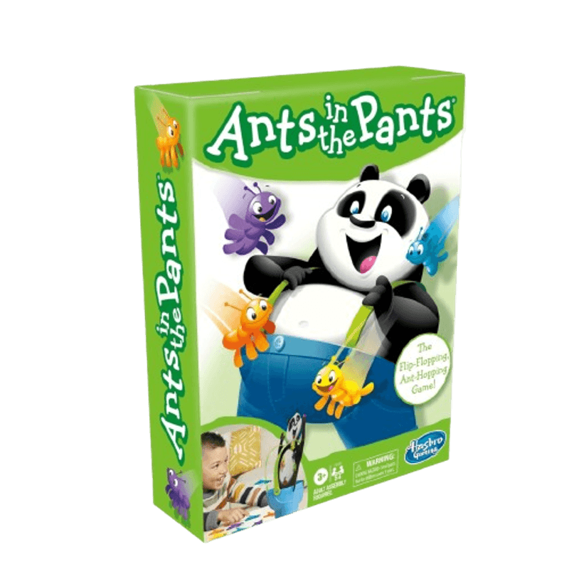 O jogo de lançar as formigas dentro da calça! Formigas nas Calças é um jogo fácil para crianças a partir dos 3 anos. As crianças escolhem as 4 formigas com sua cor favorita. Os jogadores alternam a vez para lançar as formigas nas calças do panda. O primeiro jogador a acertar 4 formigas nas calças do panda é o vencedor. Esta versão do jogo Formigas nas Calças inclui 16 formigas de plástico coloridas e peças para fazer o suspensório do panda. Este jogo infantil é simples de jogar. É uma ótima opção para crianças que ainda não aprenderam a ler. É um dos jogos internos mais divertidos e criativos para crianças. Jogos de tabuleiro são ótimos presentes para crianças. Adicione este jogo de tabuleiro infantil à sua próxima noite de jogos em família!