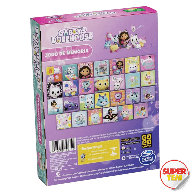 Um jogo de memória em que a dificuldade e a diversão vão aumentando à medida que vão sendo inseridas mais cartelas. Além de entreter, o Jogo de Memória Gabby's Doll House estimula o desenvolvimento da concentração, percepção visual e, claro, de memorização nas crianças.