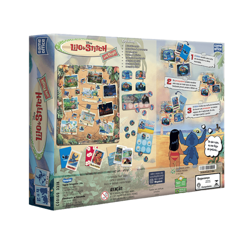Prepare-se para uma aventura emocionante com Lilo & Stitch em Fuga! Neste jogo divertido e estratégico, você escolhe de que lado está: vai ajudar Lilo e Stitch a escapar ou será o investigador que tentará capturá-los antes que desapareçam? Com visual vibrante e personagens queridos da Disney, esse jogo proporciona momentos de pura diversão em família, desenvolvendo o raciocínio, a tomada de decisão e a cooperação entre os jogadores.