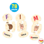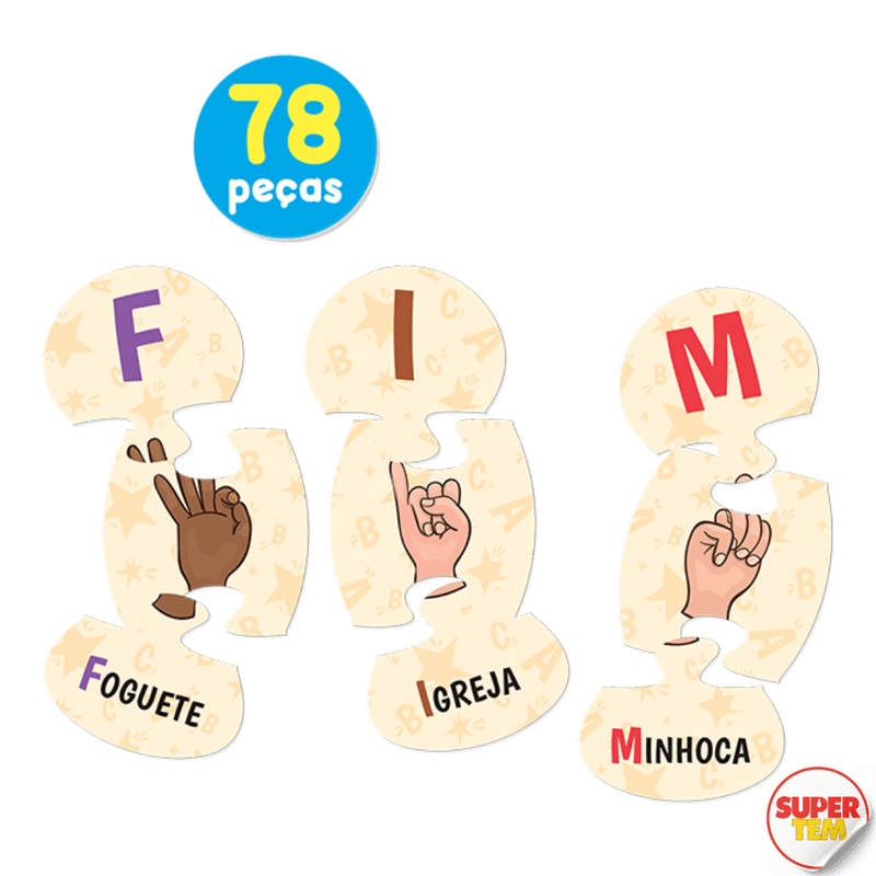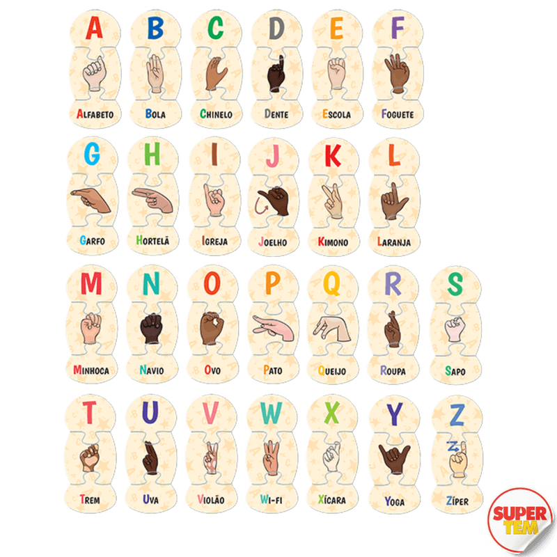 As crianças vão aprender a identificar e associar as letras do alfabeto em libras com palavras que se iniciam com elas ao montar esse divertido quebra-cabeça!
