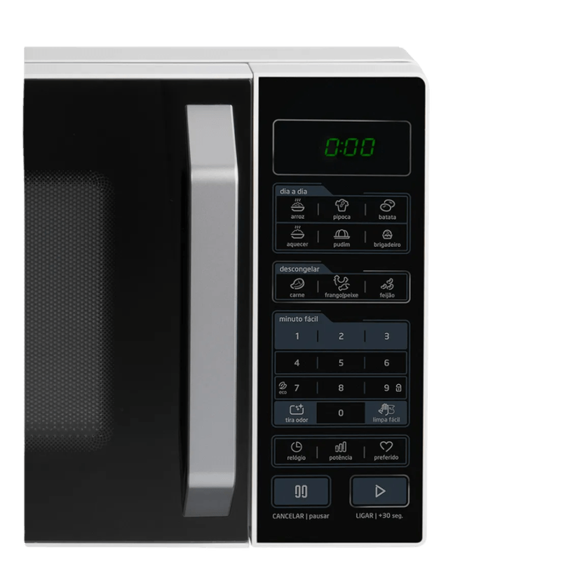 - Receitas Pré-Programadas: Arroz, Pipoca, Batata, Aquecer Prato Pronto, Pudim e Brigadeiro.