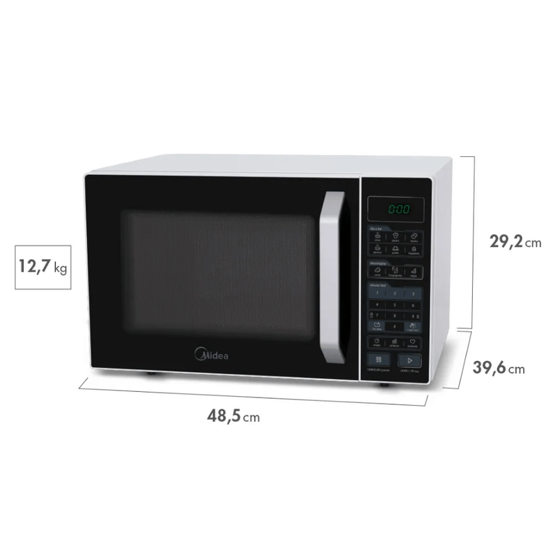 Micro-ondas Midea 27L une tecnologia e facilidade de uso para tornar suas tarefas na cozinha muito mais práticas. Ideal para o preparo de refeições, descongelamento de alimentos e aquecimentos rápidos, ele oferece diversas funções inteligentes e um excelente custo-benefício.