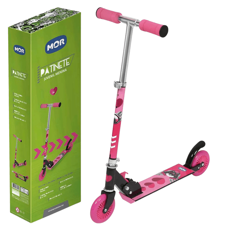 💖 Diversão, aventura e incentivo ao esporte para os pequenos! O Patinete Juvenil Rosa da Mor chegou para transformar as brincadeiras em momentos de movimento e diversão. Com visual moderno que remete a uma moto, ele é ideal para crianças aventureiras a partir de 6 anos e suporta até 50 kg. Seu design é dobrável e prático, com base larga antiderrapante e guidão ajustável em 2 níveis de altura, proporcionando conforto e segurança durante o uso.