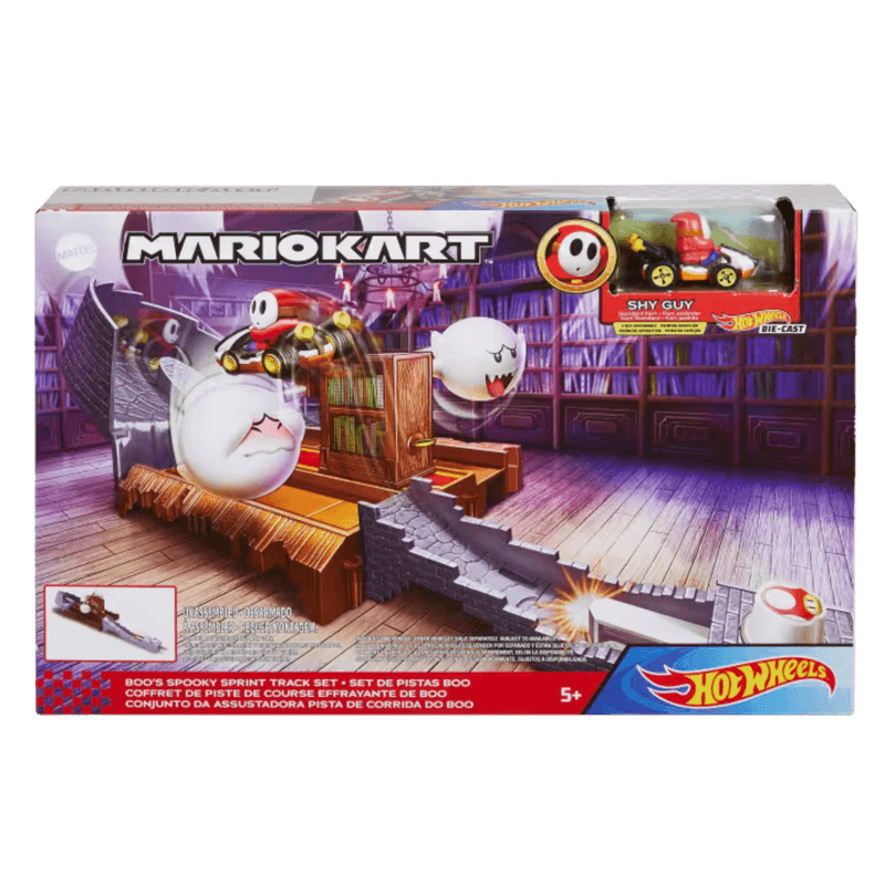 Hot Wheels® Mario Kart™ – Conjuntos de Pista com Veículos Die-CastA Hot Wheels® traz toda a emoção do universo Mario Kart™ para a vida real com incríveis conjuntos de pista inspirados nos percursos icônicos do famoso videogame! Cada conjunto inclui um kart die-cast de um personagem e permite que as crianças recriem manobras, superem obstáculos e enfrentem desafios emocionantes – exatamente como no jogo!
