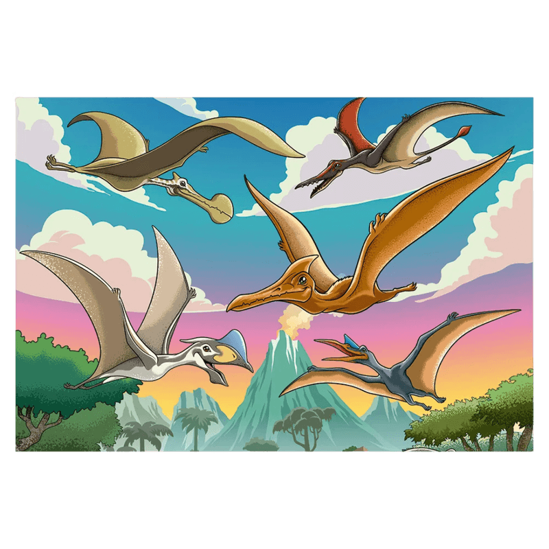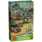 Com 3 quebra-cabeças que contém simpáticas figuras de dinossauros. A criança monta os quebra-cabeças e se diverte.