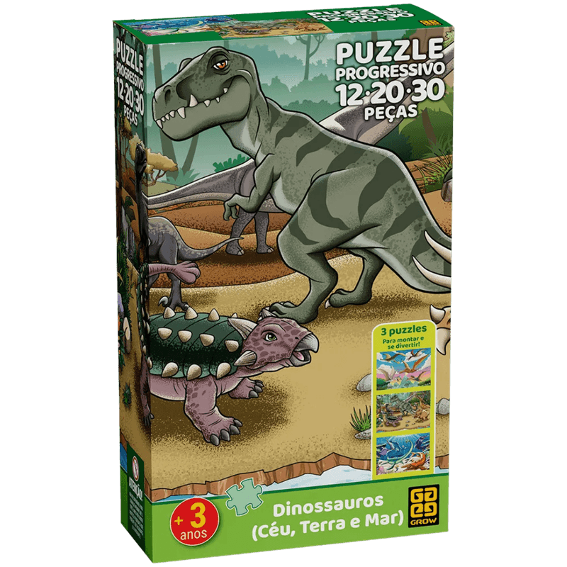 O quebra-cabeça Progressivo traz na mesma caixa três quebra-cabeças diferenciados, em que as quantidades e os tamanhos das peças determinam níveis crescentes de dificuldade. As peças do verso também são diferentes, para facilitar a separação dos modelos. Inicie a montagem pelo quebra-cabeça de 12 peças, a fim de que a montagem das ilustrações de 20 e 30 peças ofereça um desafio progressivo e atraente.