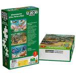 Contém 3 puzzles com 12, 20 e 30 peças.