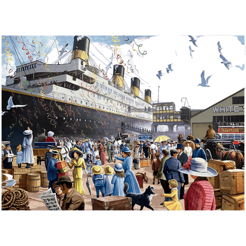 A imagem do quebra-cabeça traz os momentos que antecedem a viagem, mostrando, além do navio mais famoso do mundo, o vestuário e as bagagens dos passageiros da época.