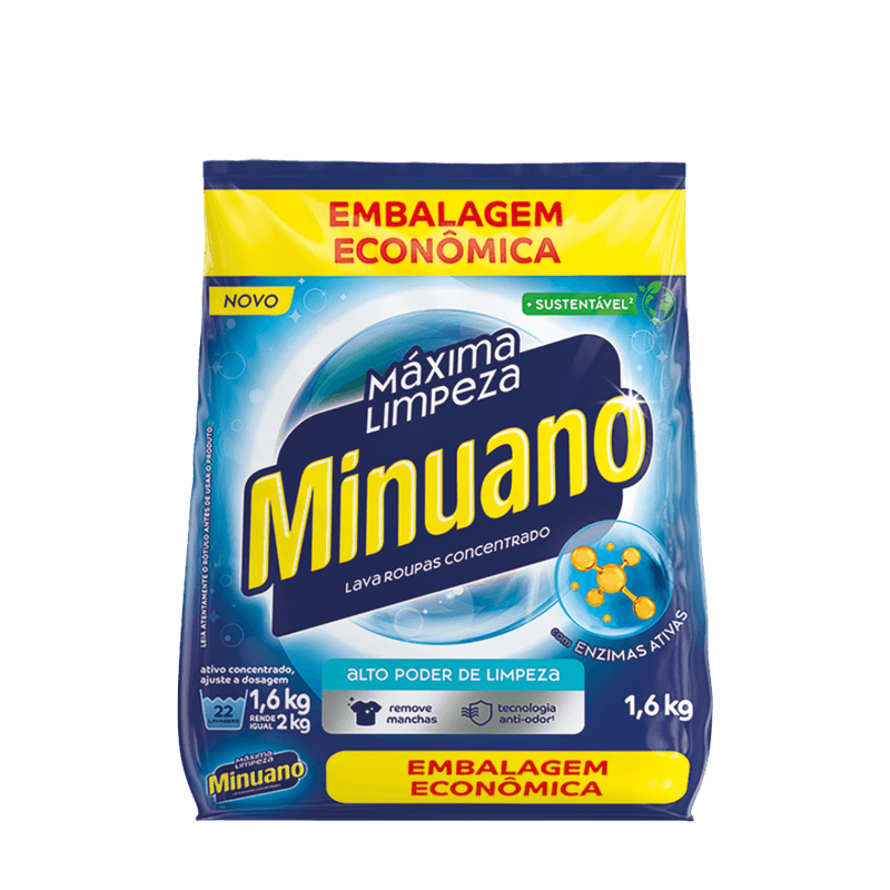 Sabão em pó Minuano Máxima Limpeza Embalagem Econômica 1,6Kg
