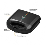 É ideal para quem busca uma solução rápida e prática para preparar lanches deliciosos no dia a dia. Com potência de 750W e revestimento antiaderente, ela garante que seus sanduíches fiquem prontos de maneira uniforme, sem grudar e com muita facilidade na hora de limpar. Além de seu design compacto e moderno na cor preta, é perfeito para cozinhas com pouco espaço.