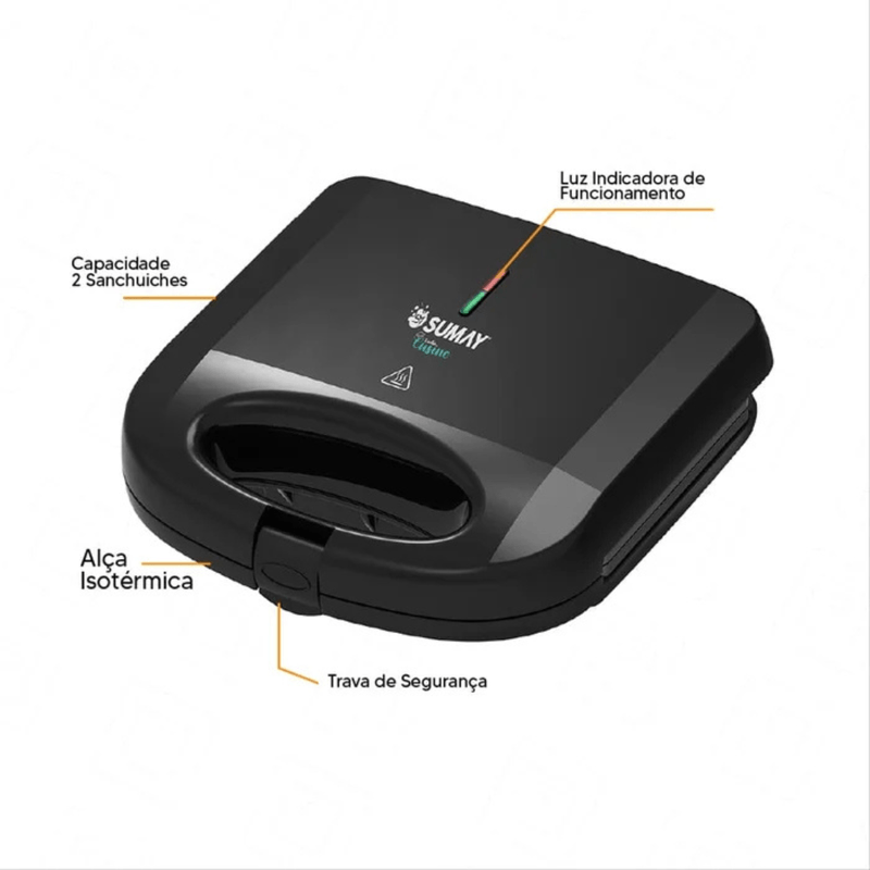 Além disso, a sanduicheira Sumay possui travas de segurança e pés renovados, garantindo estabilidade e segurança durante o uso. Ela também oferece aquecimento rápido, o que economiza tempo na hora de preparar suas refeições. Seu tamanho compacto facilita o armazenamento, sendo perfeito para qualquer tipo de cozinha.