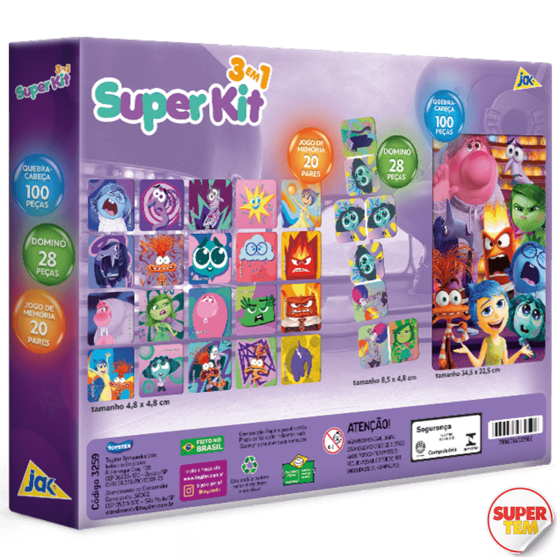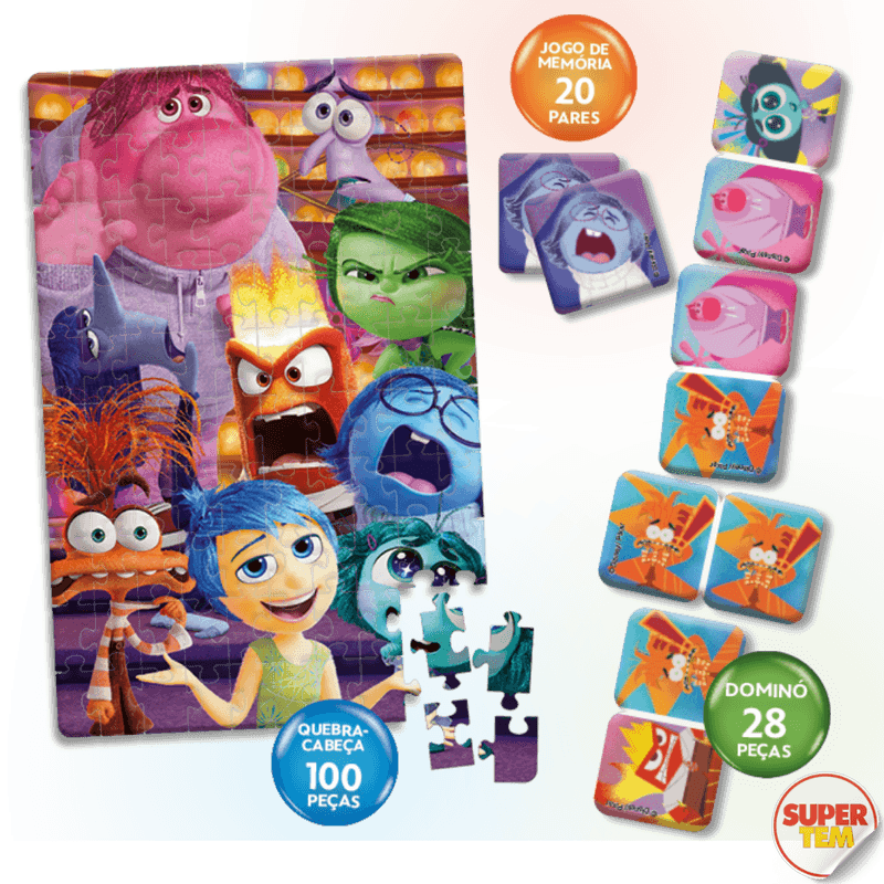 Divertido kit com quebra-cabeça, dominó e jogo de memória de Divertida Mente 2!